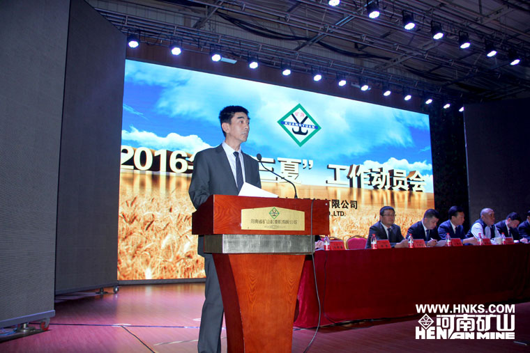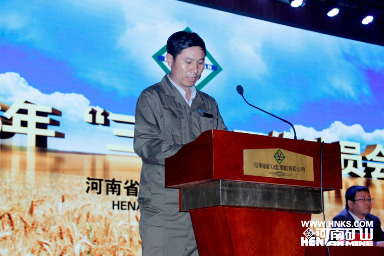总经理任海涛随后发表重要讲话。他首先分析了行业形势,指出当下正处于国家产业结构调整的关键阶段,经济增速明显放缓,传统行业面临重大挑战,60%以上的起重机企业都处于停产半停产状态,我们一定要有忧患意识,在工作中时刻绷紧按时生产这根弦,不可有一丝懈怠。接着,他对生产工作做出重要指示,要求各班组发挥吃大苦耐大劳的优良作风,特别是那些要求高、时间紧的大活急活一定要按时完成。
