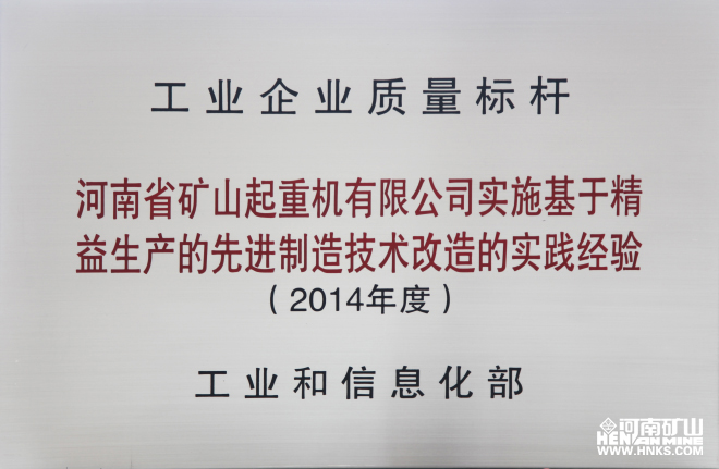 近期,从国家工信部获悉,根据“2014年工业质量品牌创新专项行动”工作计划,经国家工信部、河南省经信委推荐、遴选以及专家评议,河南矿山成功入选国家30个工业企业质量标杆企业名单(全国起重行业仅1家)。该名单涵盖全国各行各业,海尔、联想、联电、神华、中航工业、中石化、上海电气等国内大型企业均有入选。